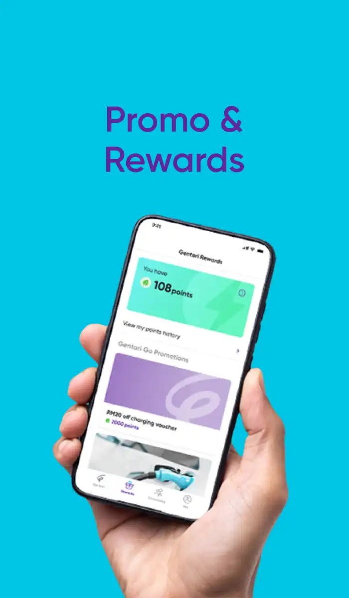 To participate in our Gentari Rewards program, sign up as a user and begin charging your electric vehicle to start earning points!